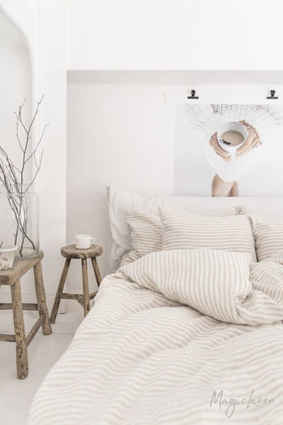 MagicLinen - Striped in natural duvet cover set (3 pcs): US Queen + Queen Pillowcases