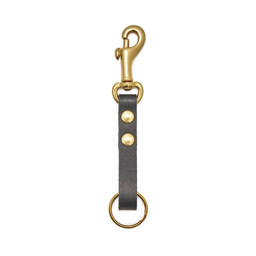 This classic leather key fob has the added functionality of a swivel clip, perfect for keeping track of your keys. Vegetable tanned leather features a solid brass rivets and a solid brass swivel clip, and is the optimal size for carrying your keys in style. Available in natural, tan, or black.